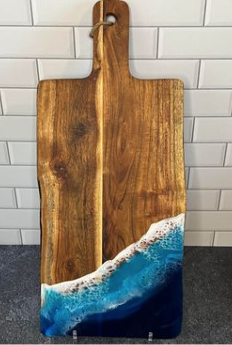 Charcuterie Board Food and Drink Designs Boards with Resin Design Locally Made Boards Raw Edge Boards Boards with Handles Fish Cork Screw Engraved Board Examples